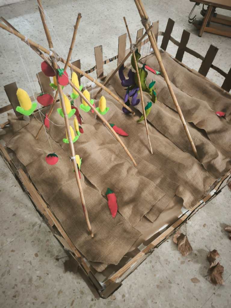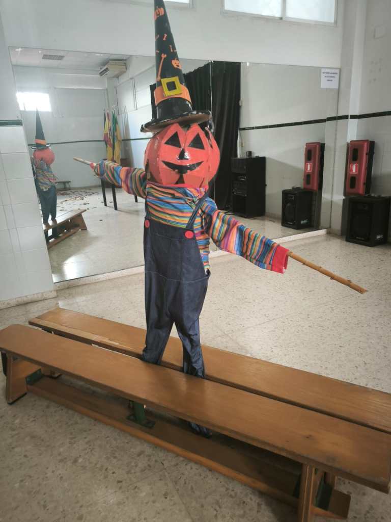 El alumnado de 3° ESO creó un huerto, un espantapájaros y más decoración como una chimenea para los diferentes espacios del escape room que el alumnado de 4° le hizo a los 1° ESO.