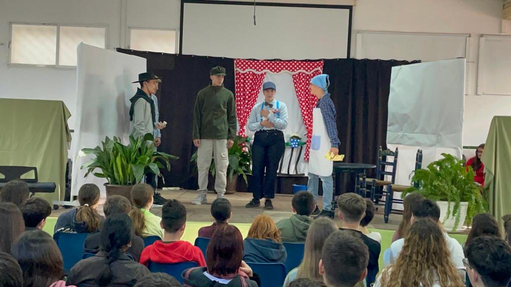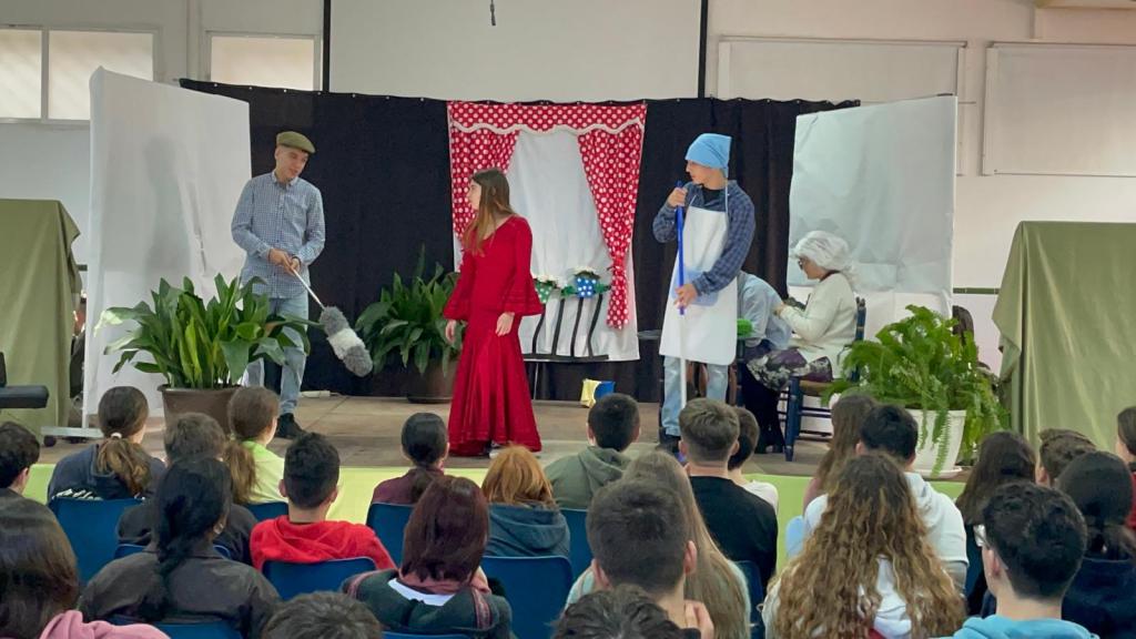 Antes de este suculento bocado, asistieron a la interpretación de la canción «Qué bonito es querer» del onubense Manuel Carrasco, cantada y tocada en directo por el alumnado de nuestro coro, quedaron embelesados viendo actuar al grupo de alumnos y alumnas de la materia de Artes escénicas y danza con su puesta en escena de una «Astracanada» del ilustre dramaturgo portuense Pedro Muñoz Seca, se emocionaron con el Himno de Andalucía tocado con las flautas del alumnado de 1ºESO, que también cantó la letra, y se dejaron halagar con el premio y el reconocimiento al alumnado andaluz destacado con catorce nombramientos a alumnado, desde 1º a 4º de ESO, que dedica parte de su tiempo a practicar diferentes deportes en competiciones regionales y nacionales, disfruta con la danza urbana y el ballet clásico, toca diferentes instrumentos, escribe poesía y sobre todo deja en muy alto lugar el orgullo de llamarse andaluces o andaluzas subrayando los valores de esfuerzo, superación y valía de nuestra tierra.